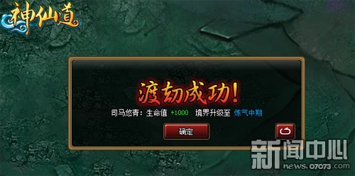 修真者经历无数的劫难,达到先天境界后,将会遇到天劫。只有度过天劫,达到大乘期之后,才会飞升,最终成为一名仙人,飞升至仙魔各界。“渡劫”是神仙道资料篇中推出的最重要玩法之一,也是玩家等级和境界提升的最重要因素,玩家渡劫之后,会获得生命值的提升!