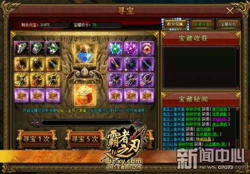 行走江湖,没有几件超强的宝贝傍身,怎能战出超然霸气?在XY游戏《霸者之刃》,最快获取宝物的方式,肯定是探索寻宝啦!玩家只要花费少量元宝,每天均可进行不限量寻宝,传说特戒、转生装备、绿晶紫晶、海量金刚石……duang,就像加了特技,宝物爆出根本停不下来!XY游戏《霸者之刃》大神寻宝是这样子,你们寻宝也是这样子!