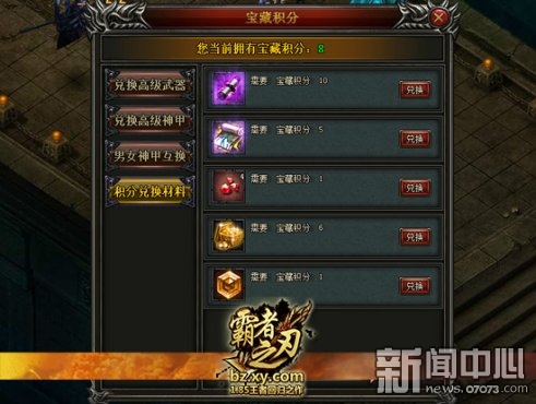 点开XY游戏《霸者之刃》寻宝界面右上角的积分兑换,你便会发现这里真的暗藏乾坤!由于XY游戏《霸者之刃》武器、衣服和首饰的升阶途径不同,因此寻宝积分兑换也就成为XY游戏《霸者之刃》非常重要的高阶武器、衣服来源。目前,XY游戏《霸者之刃》寻宝积分兑换最高可换取11转的武器和衣服,想凭装备碾压对手的话,就赶紧来赚寻宝积分吧!