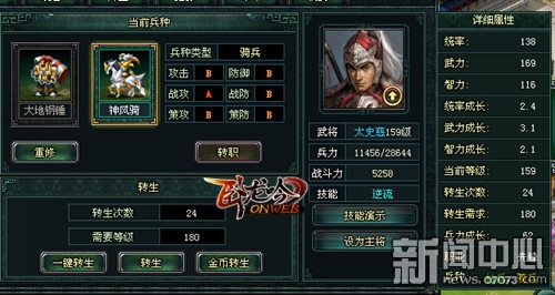 进入武将顿悟界面之后,点击食物按钮时给当前武将增加食物经验,当武将某项食物经验值达到封顶时该类食物的按钮隐藏,武将所需求的食物经验值都封顶后隐藏食物按钮,并出现顿悟按钮。顿悟武将继承原武将转生次数、武将等级、武将经验、武魂等级、武魂当前经验,水军等级、水军经验,兵种转生次数。并且顿悟前武将身上的所有装备平移到新武将身上。