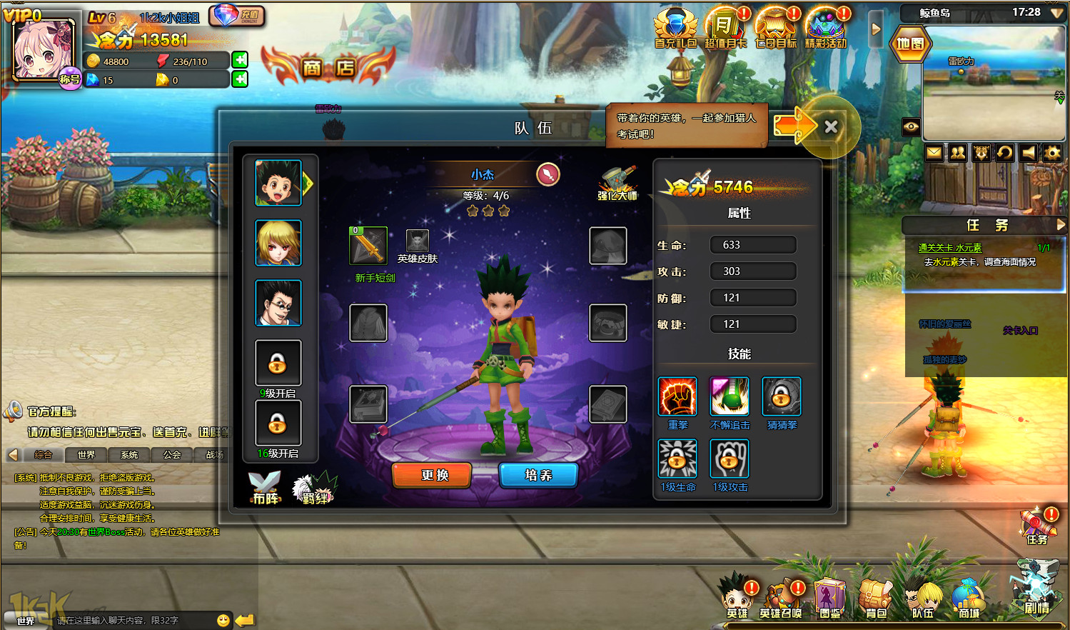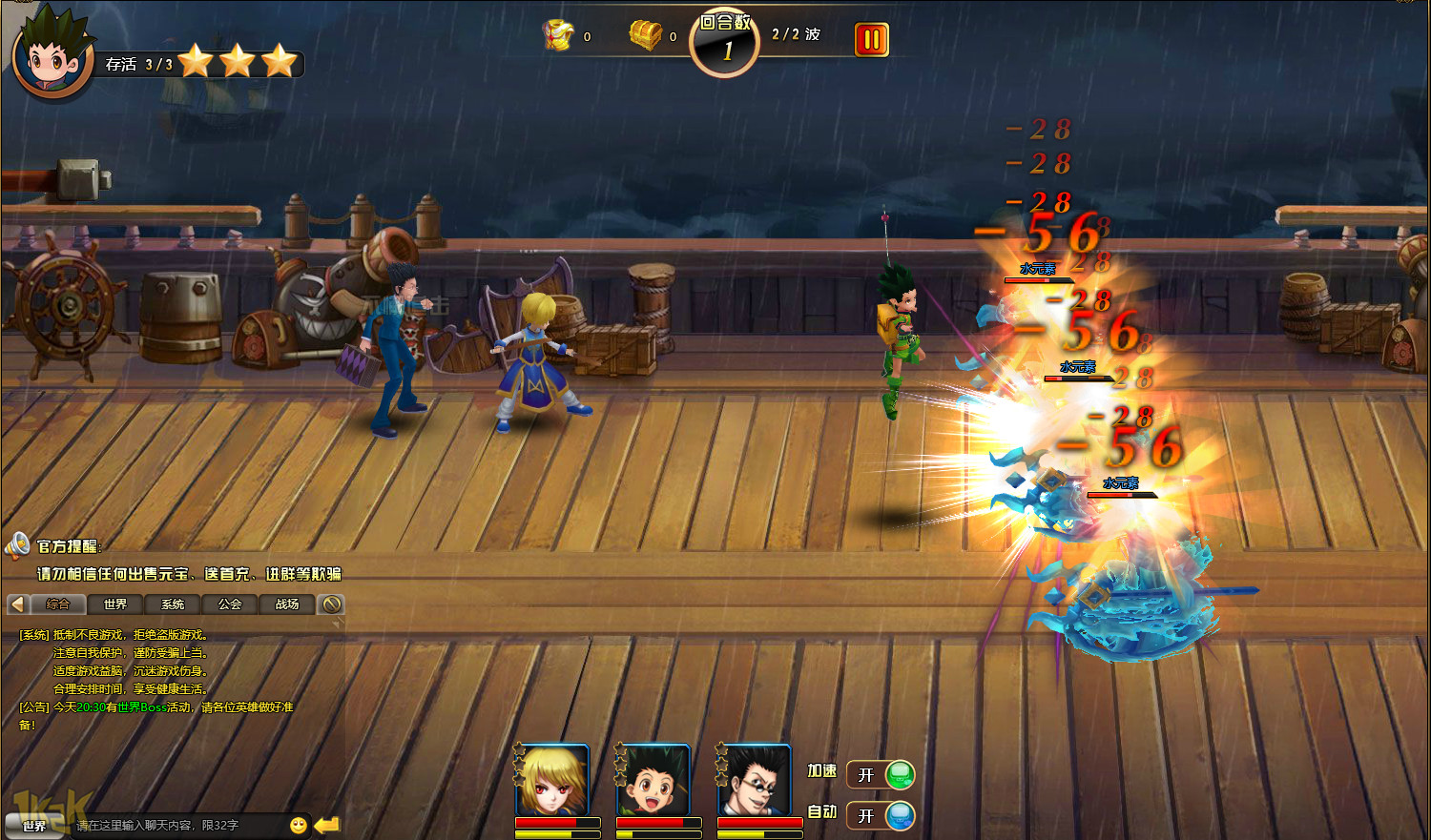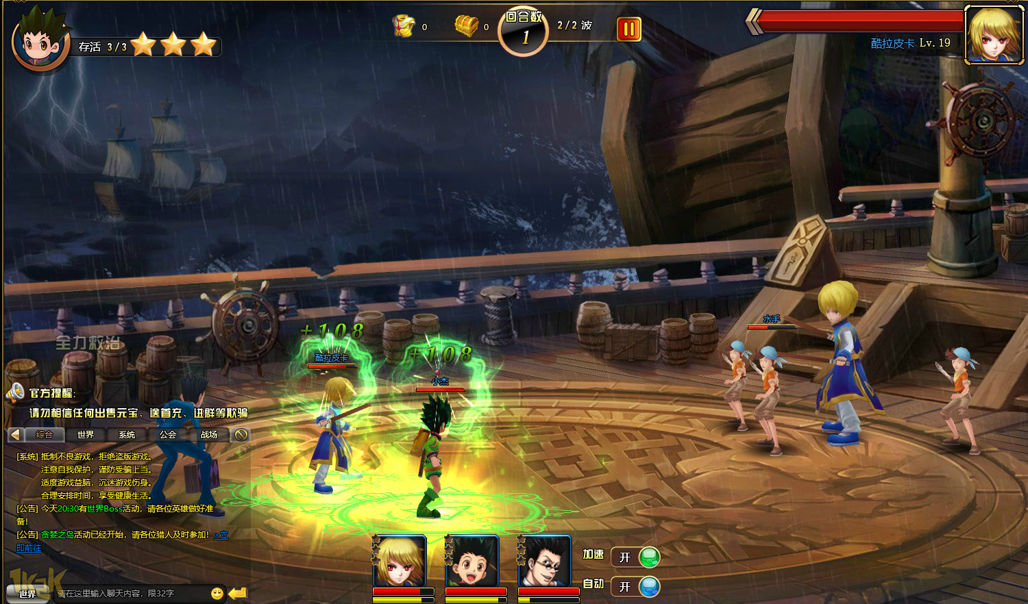 《猎人出击》是1k2k一款以人气日漫《全职猎人》为故事蓝本改编的RPG类型网页游戏。玩家在《猎人出击》中的任务就是重温小杰的冒险故事,熟悉猎人世界的各种规则,收集各种漫画中熟悉的角色来完善你的阵型,最终一步步完成猎人试炼和冒险,将他们都培养成为最厉害的猎人。