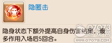 5层效果:隐身状态下额外提高自身伤害结果15%,最多作用入场后5回合。