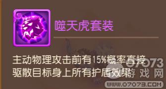 在护盾越来越多的当下环境(魔王印记被改为护盾,固本培元器灵套装产生护盾,律法套装产生护盾),直接驱散所有护盾效果的噬天虎套装有着相当不错的前景。