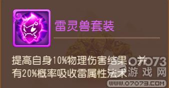 新效果:提高自身10%物理伤害结果,并有20%概率吸收雷属性法术。