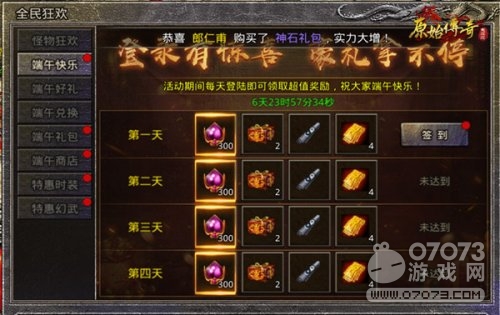 登录有惊喜,豪礼拿不停,只要在活动期间内每天登陆即可领取超值奖励,重点是免费领取,只需签到即可,礼包礼品有300传奇币,2个豪华宝箱,1藏宝图,等,这都是稀有的材料物品给大家大放送啦!这让小编看的都流口水啦!快来一起参加这次活动吧!