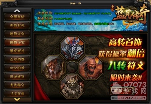 想要飞速提升战力的伙伴们看过来啦!这次寻宝活动高转武器和首饰概率既然是翻倍的,而且连高等级八转符文都能限时抽取,八转符文能够大幅度的增加对不同职业百分比伤害和减少的伤害,以及能够大量的增加血量这对于战力来说真的是太重要啦!快来参加寻宝活动呀!