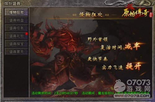 怪物狂欢期间喜爱挑战BOSS的玩家就有福气喽!在活动时间内魔龙级别以上的野外首领刷新时间减半!这期间都不用担心苦兮兮地等着怪物刷新的日子啦!能够抢到BOSS的几率也变大啦,正是趁此机会提升实力的好时候哦!快去挑战野外BOSS吧!
