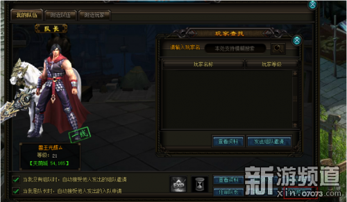 2.在组队界面中选择添加队员按钮,然后在打开的玩家查找界面中,搜索或直接添加玩家;或者是在附近玩家和附近队伍的页签中,选择添加队员或申请入队。本地图的所有玩家都会被显示在玩家查找界面中。