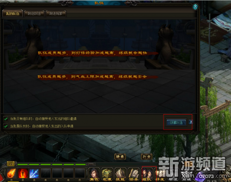 组队收益:队伍中每多一个人,杀怪经验就会上升10%,最高30%;角色血量提高1%,