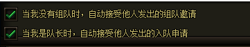 在组队界面下方,可以看到2个选项。该选项在勾选之后,当我没有入队或我是队长时,别人的组队邀请或入队邀请将被自动同意,只要队伍有足够位置就会被自动邀请入队。