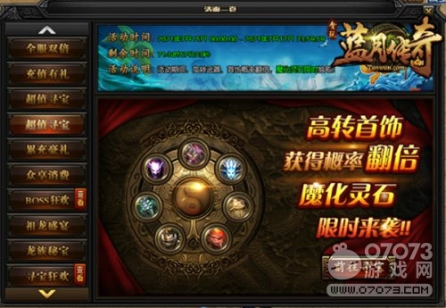 想要飞速提升战力的伙伴们看过来啦!这次寻宝活动高转武器和首饰概率既然是翻倍的,而且连魔化灵石都能限时抽取,魔化灵石能够大幅度的增加属性,以及能够大量的增加血量这对于战力来说真的是太重要啦!快来参加寻宝活动呀!