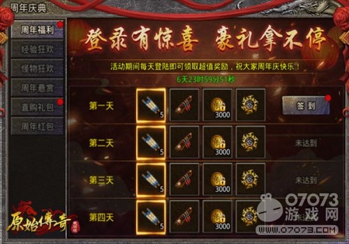 周年庆典期间,玩家只需要登录并且签到,就能获得相应的丰厚奖励,活动持续七天,保持每天签到,签到奖励包括:传奇币(绑)、队伍召集令、超级藏宝图、血脉精华、10倍经验卷轴(绑)、幸运石以及周年庆称号。周年庆称号仅周年庆典活动期间可获得,如果错过了这次,就只能等下一次的周年庆典了哦!