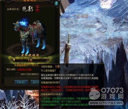 开始进阶”即是玩家手动进阶,只要进阶材料足够,就可以鼠标快速点击进阶按钮进行进阶,若坐骑进阶材料不足,则可以使用元宝代替。