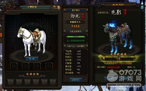 坐骑达到2阶后可变换形态,成为你的好帮手,坐骑阶数越高,其变换的形态越拉风,坐骑的技能也将技压群雄。