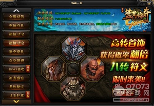 想要飞速提升战力的伙伴们看过来啦!这次寻宝活动高转武器和首饰概率既然是翻倍的,而且连高等级八转符文都能限时抽取,八转符文能够大幅度的增加对不同职业百分比伤害和减少的伤害,以及能够大量的增加血量这对于战力来说真的是太重要啦!快来参加寻宝活动呀!