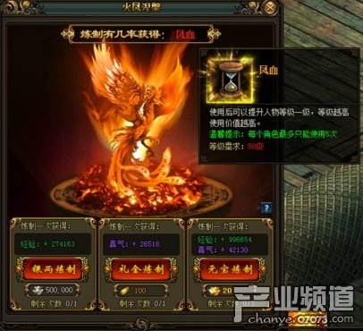 1,玩家每天都有银两炼制,礼金炼制,元宝炼制凤血的机会