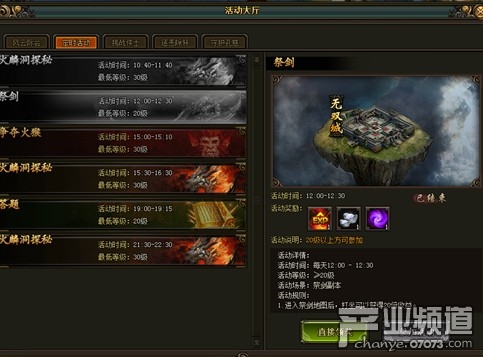点击活动大厅的祭剑活动标签可以进入活动场景。