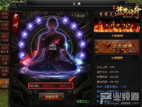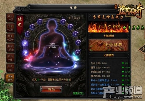 元神初始为出世,通过消耗经验和金币,或者购买元神丹来兑换元气。通过消耗元气激活10个气旋,将境界修满至10层。