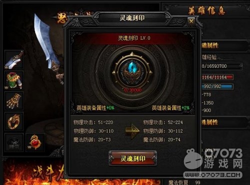 提升灵魂刻印等级,可以增加英雄装备附加给英雄的属性