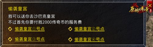 进攻方可以通盟重老兵前往影之道直接花费2000传奇币偷袭皇宫,偷袭皇宫有4个点可以选择进,分别对应着皇宫里东南西北四个角落,需要注意的是影之道里是可以使用召唤令的,可以直接召唤帮会里的兄弟进去偷袭皇宫。