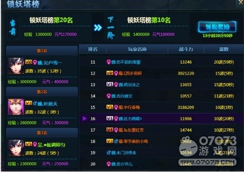 7. 玩家每日可以查询锁妖塔排行,根据排行的变动领取总奖励