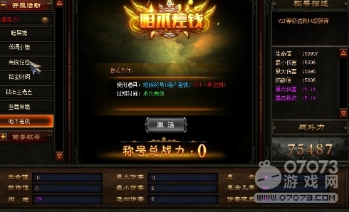 激活称号可以获得属性,没有装备的称号同样可以获得战力!