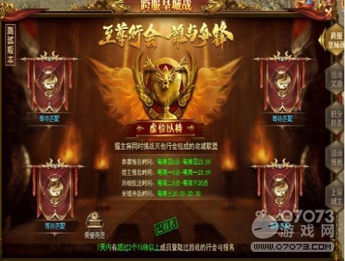 3、非皇城行会参与条件--7日内登陆游戏的成员(15转以上)超过5人的行会方可参与。
