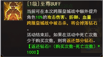 活动结束后,如果被击杀的次数少于购买至尊BUFF次数,即可获得剩余次数的钻石返还。