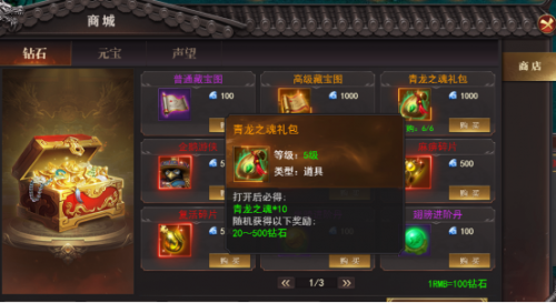 (3).钻石商店:花费钻石购买青龙之魂礼包,每日限购6次;