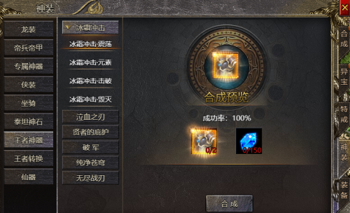 当角色等级达到100级时,可以通过获取该装备来提升自身实力,在角色-神装界面,点击右上角的王者图标,即可进入到王者神器装备界面。王者神器共有8种不同的部位,分别是冰霜冲击、泣血之刃、贤者的庇护、破军、纯净苍穹、无尽战刃、巫术法杖、破晓。