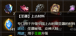 我们需要先获取圣器碎片来激活圣器系统,圣器碎片可以通过圣器秘境、灵符购买和众神大陆挂机获得,激活了圣器后,再用每个神话特有的碎片加上元宝进行升级,这些材料可以通过圣器秘境和众神大陆挂机获得。
