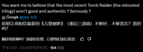 然而,评论区中也有玩家对他的看法提出异议:“我记得《古墓丽影8》似乎是系列中最差劲的一作,难道我的记忆有误?”