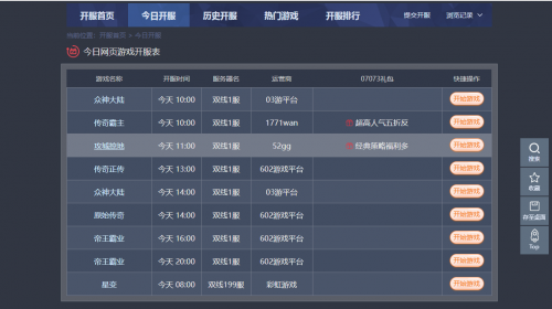 游戏名称 开服时间 服务器名 运营商 07073专属福利