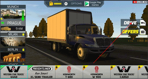1.下载并安装德国卡车模拟器,进入游戏界面,然后点击图片开始游戏。