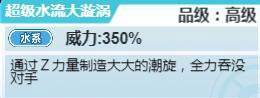 超级水流大漩涡:通过Z力量制造大大的潮旋,全力吞没对手。威力350%的高级水系输出技能。