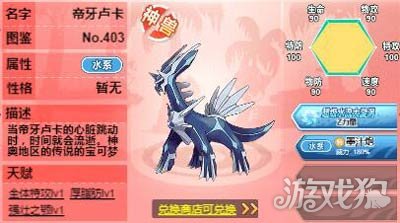 帝牙卢卡的输出非常高,还有降低对手命中的能力。这些有点结合起来就让帝牙卢卡输出高,还安全。这就是最强水系神兽帝牙卢卡的实力,喜欢就去兑换商店寻找吧。