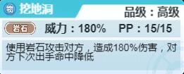 挖地洞:使用岩石攻击对方,造成180%伤害,对方下次出手命中降低。高级岩石系技能。