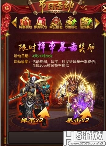 活动期间,法宝,战灵进阶暴击率双倍,全民boss橙装暴率翻倍