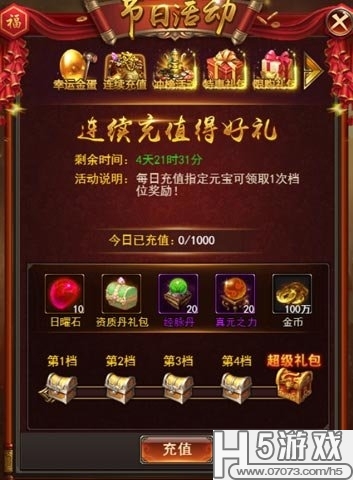 活动期间,每天充值一定金额,即可获得一次档位礼包