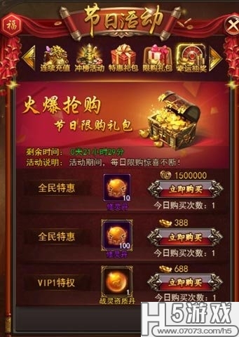 活动期间每天都会出售不同的限购礼包,遇到赚到!