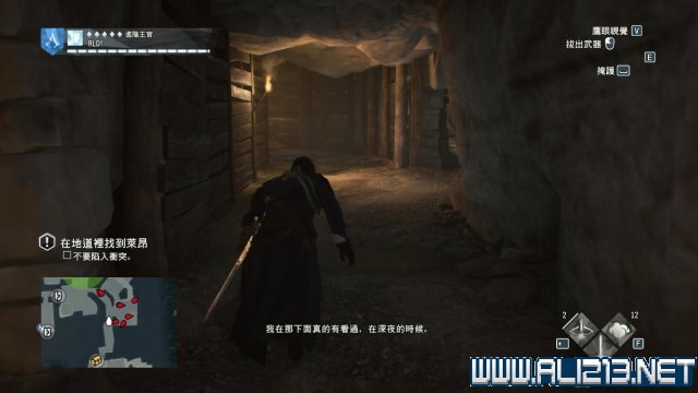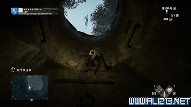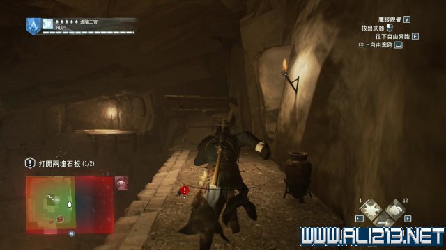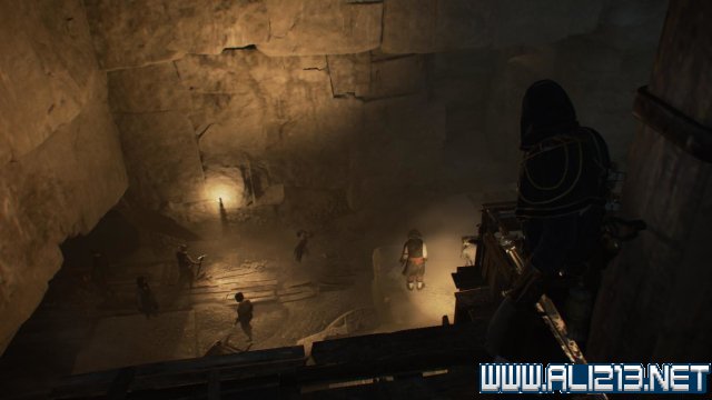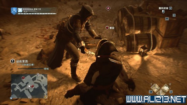 留意下方,肯定还有1名士兵不受风琴的影响还留在原地,此时施展空中暗杀收拾他,然后去到东面的地洞入口前,这里也必然有3名士兵,要暗杀他们实属不易,所以远远向他们投掷一颗烟雾弹,然后马上窜进地洞内,那么此时第一阶段就能够确保亞诺没有陷入冲突。