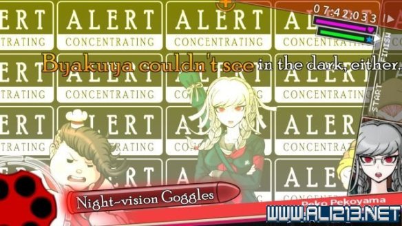 第二回合,按Q键切换为言弹“夜视镜”针对边谷山佩子所说的“十神白夜看不见(byakuya couldn't see)”。