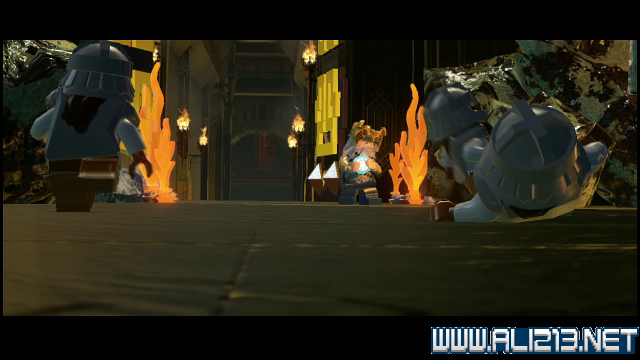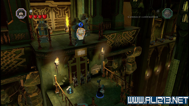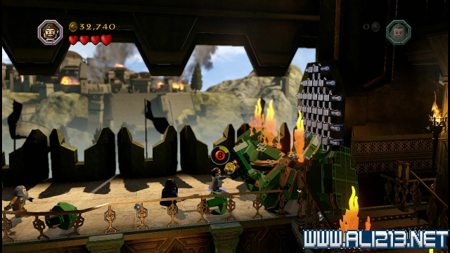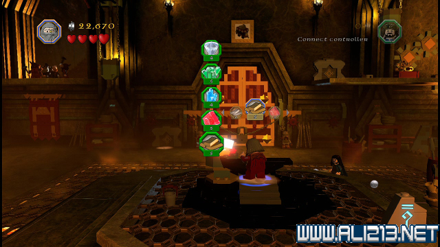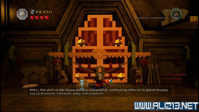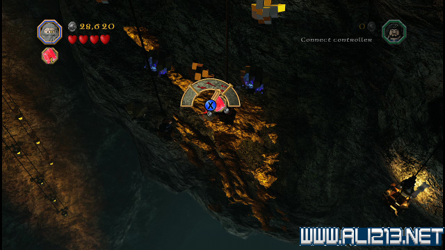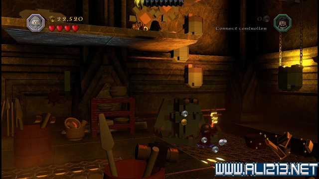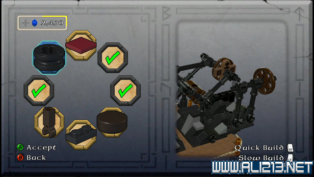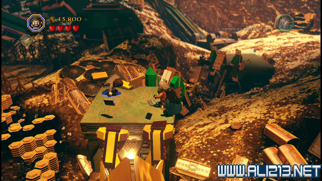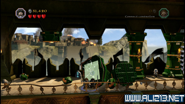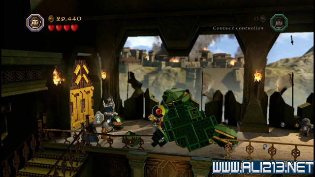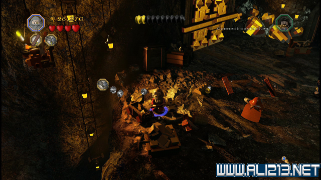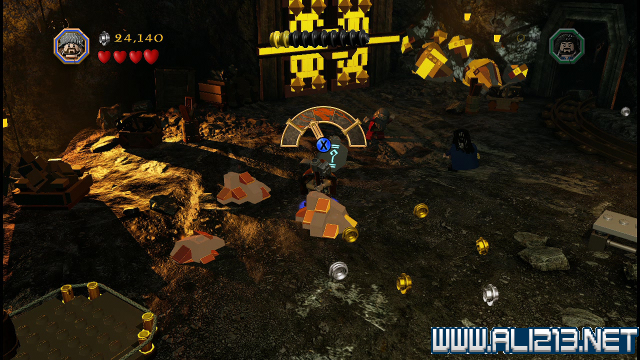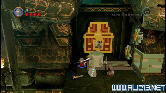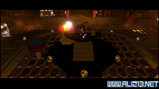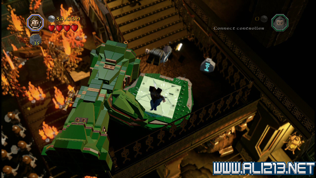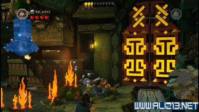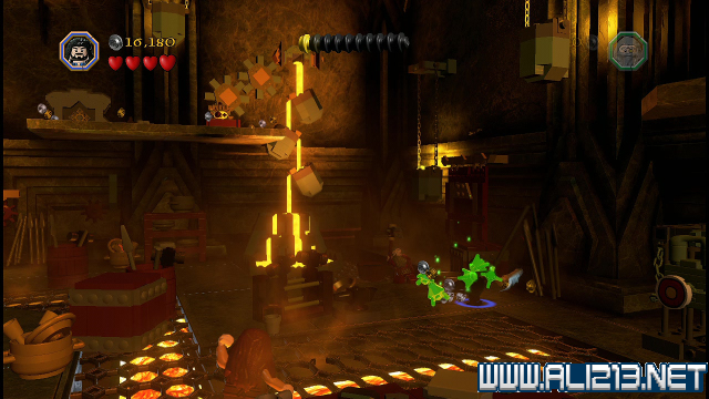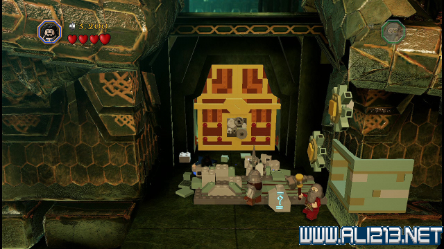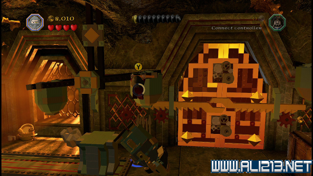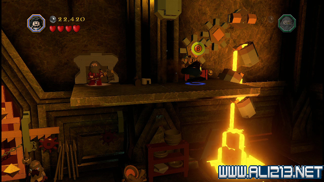 step22.沿着金樽人走到它的座上,让索林击碎座上的两嗰金箱子,会获得积木部件,拼凑它们,会制造出一条通往右侧的一条木板桥。