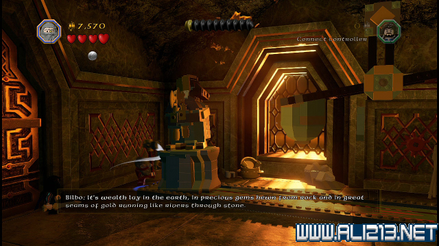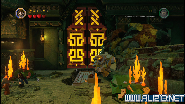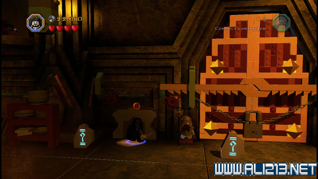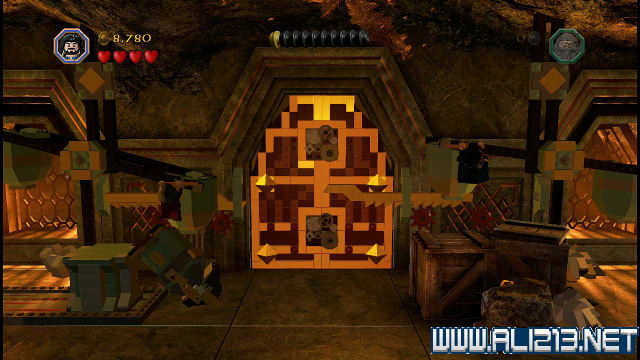 step8.回到刚才击破载着红色宝石的矿车后,会发现矿车挡住了一条密道,此密道仅能让矮人、哈比人通过。进入密道能够从金门右上方的平台外出。