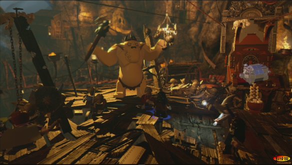 矮人第一小队,掉进了奥克斯的舞会,这里的任务是消灭十个奥克斯,而不是去战BOSS,虽然这个BOSS看起来好像很萌的样子。之后BOSS会抱起一些箱子,使用箱子上的机关就可以消灭BOSS了,但是这里是打不死BOSS的,还让BOSS跑掉了。