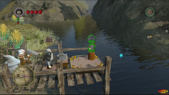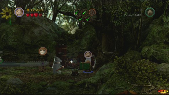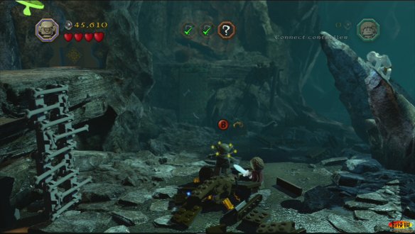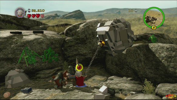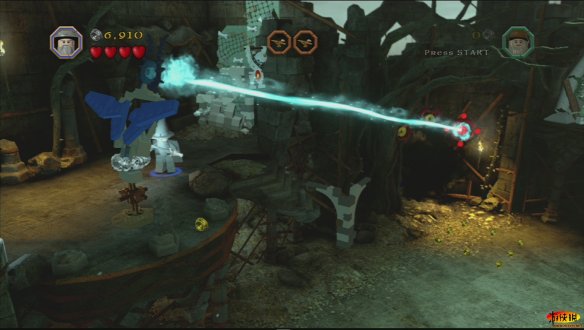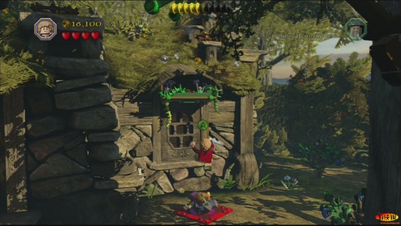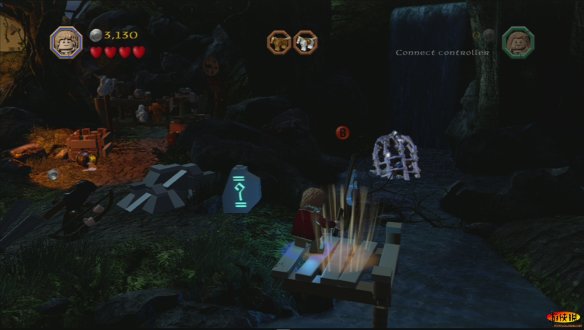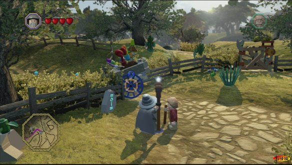 和其他游戏不同,《乐高》的每一部,每一个人物都有特殊的用处,例如甘道夫在这里就可以使用魔法让车子离开,如果你失败了多试几次即可。就这样比尔博•巴金斯和甘道夫一起离开了夏尔国。