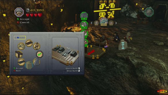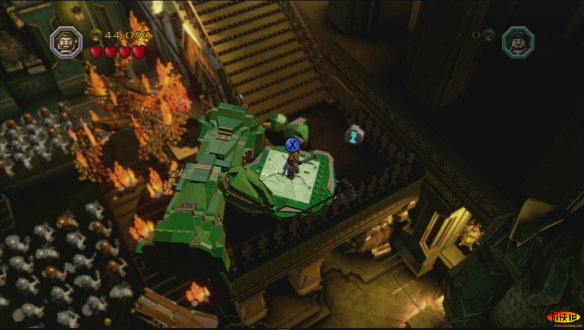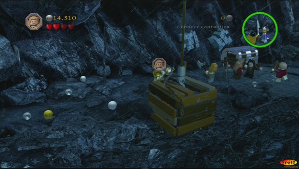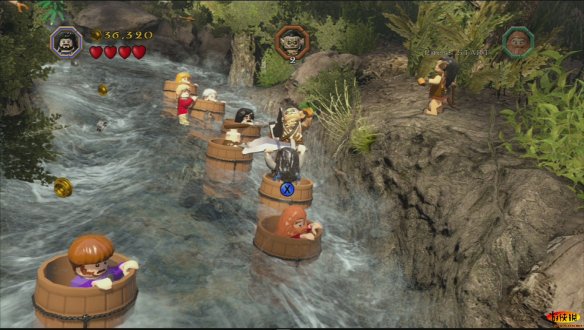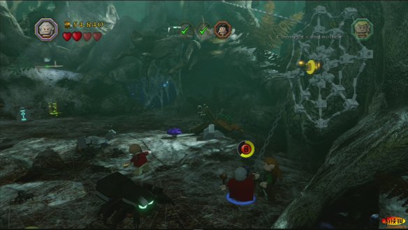 精灵王来到矮人的宫殿,却被傲慢的矮人王赶了出来。而矮人王要求索林带领着他的伙伴们为他寻找更美丽的宝石。索林带领着伙伴们前往了矿洞进行挖掘,介绍一下 XBOX的操作按键, 方向键:L遥感 更换小伙伴:Y 道具栏/武器栏:Y(长按) 互动/攻击:X 合体/互动:B 跳:A 更换武器:RT 和索林一起来到炼金室,在这里打开第一扇门,这里要开始收集各种宝石来打造一把钥匙来打开折扇门,可以在这个房间的木桶里,攻击木桶来获得各种宝石,但是这里有一种宝石比较困难。在左侧找到红宝石堆积的矿车。打破后有个小洞,到达第二层来关闭岩浆,可以获得这种宝石。 在炼金台铸造宝石钥匙,这里有个互动