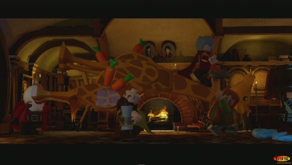 Dwialin可以用锤子移动一些有滑动条的物件,移动之后就可以进入大厅。之后是老英雄Gloin来到小屋,在小屋的最左侧搭建一张矮人专用的桌子。并为这些矮人那些吃的。