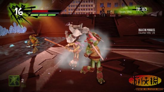 本章开始,玩家可以选择操控角色了,不是像序章那样开始只能选莱昂纳多。忍龟升级后按照技能加点也会有很多新招式比如RT+Y RT+B