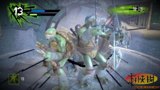 忍龟力量 脱影而出里,每个角色都可以升级,来获得更强力的combo,或是每个角色的特殊能力。在游戏中,可以获得披萨、饮料这一类的物品来补充体力,还有很多的其他道具,比如说手雷、EMP手雷、普通飞镖、电子飞镖,还可以收集杂志解锁基地里接机上的关卡,这些关卡都是以前的忍者神龟中的关卡。基地里有很多要素,升级武器,训练,团队训练等等,可以强化忍龟的力量。游戏的打击感很强,操作也简单易上手,流畅度也还行,一套combo打完出现的硬直可以用跳跃取消,还有防守反击,双防守反击,偷袭等攻击方式,在敌人防御的时候用蓄力槽可以发动特殊攻击可以瓦解敌人的防御,敌人晕倒到底之后可以将他提起 继续揍= =……并且在击倒敌人的瞬间有个特写,敌人防御的时候用XXY或是YXX这种攻击方式可以破防,boss战不一定,boss战乌龟们连boss都很难摸到。在敌人COMBO次数达到10次时还可以以tpok(一套华丽的终结技)了结敌人,在每个角色升级之后还有新的技能可以使用也是消耗蓄力槽的,游戏中玩家操作角色和AI控制角色站的比较近的话,使用特殊攻击会发动合体攻击(词穷= =)前提是电脑操作角色蓄力槽不能为空。在游戏中玩家可以随时随地切换可操作角色,每个角色也有各自的特点,莱昂纳多比较平均,拉斐尔比较脆,但伤害高,米开朗基罗的combo数高,多纳泰罗容易击倒敌人。游戏中的boss战也很有趣,每个boss都有两到三个阶段,最后阶段boss技能很多,就是考研玩家眼睛与手速的时候了。